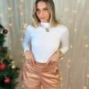 Body manga longa e gola alta em poliamida premium. Modelagem perfeita, toque macio e conforto absoluto. A base essencial para looks versáteis.